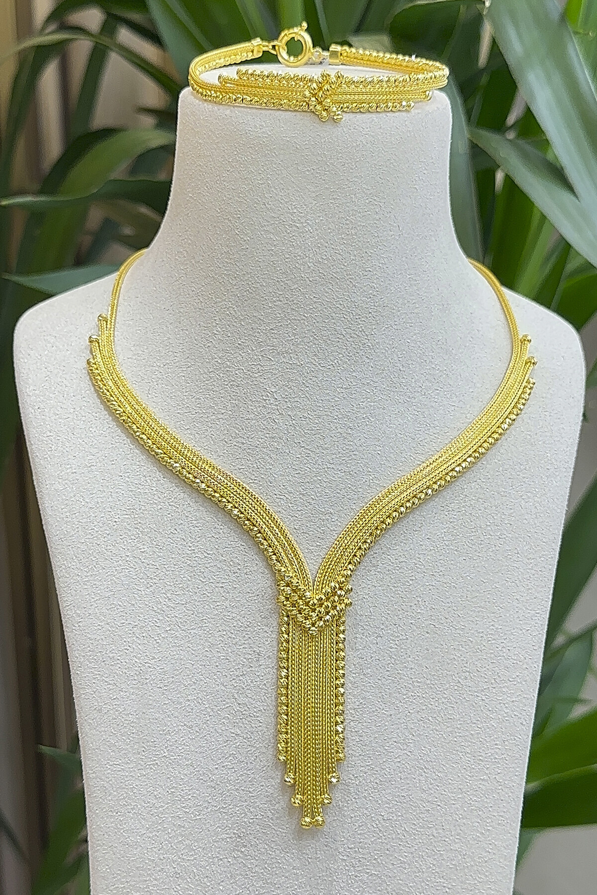 22 Ayar Altın 3 Sıralı Bilezik & 5 Sıralı Gerdanlık Trabzon Hasır Set