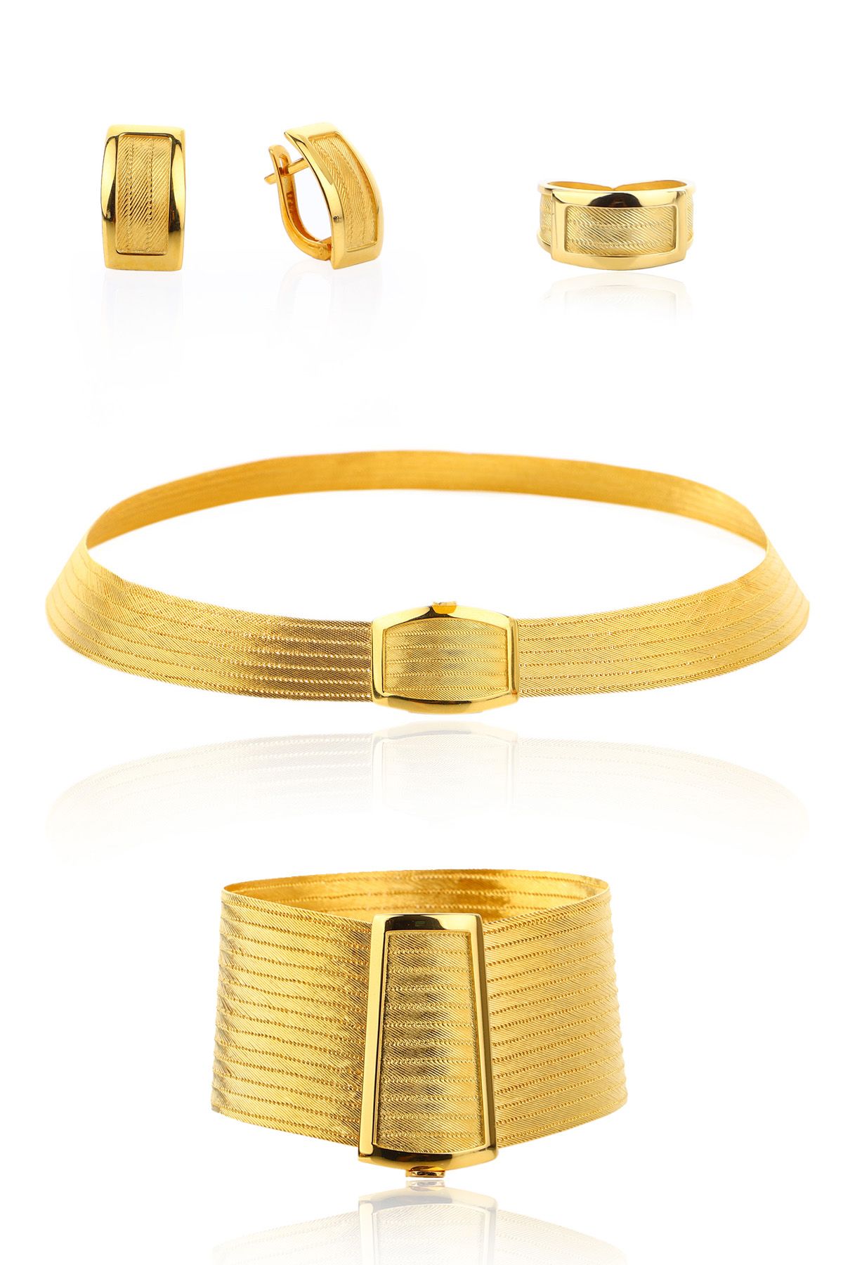 22 Ayar Altın 5 Sıralı Bilezik & 5 Sıralı Gerdanlık Trabzon Hasır Set
